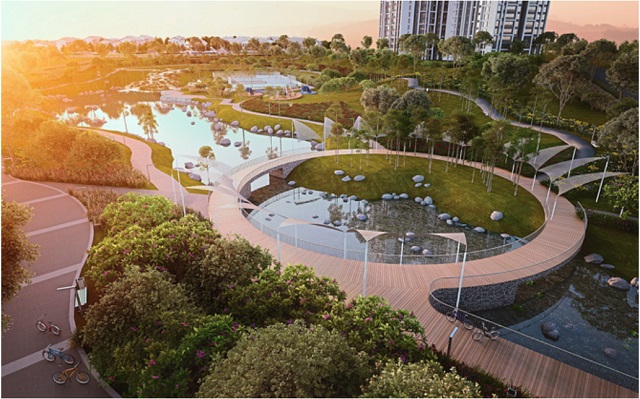 This tranquil park is complete with a 2.3 km-long walkway which encircles a 750-meter linear lake that forms the breathtaking focal point. It is home to plenty of thoughtful touches such as a wide variety of thematic gardens, children’s playground, manicured meeting spaces, pavilion as well as a floating gazebo and platform. There is also a two-acre recreational hub that provides a sanctuary out-of-home with plenty of activity options: Olympic length swimming pool, tennis and badminton courts and sauna, to name a few.
